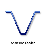 A Short Iron Condor opció a Long Iron Condor ügylettel ellentétes nettó debit tranzakció. Abban különbözik a Short Iron Butterfly ügylettől, hogy a keselyű középső részét alakító összetevők árban is szeparáltak. Annak ellenére, hogy nettó debites ügylet, nem túl népszerű stratégia, mivel a Straddle és a Strangle ügyletekhez képest kisebb a megtérülése. A pozíció kialakítása a Bear Put Spread és a Bull Call Spread pozíciók együttese. A magasabb Put összetevő árfolyama kisebb, mint az alacsonyabb Call kötési ára, kialakítva így a keselyűre emlékeztető alakzatot. Az így keletkező ügylet nagy mozgású részvények esetén nyereséges. Hátránya, hogy a nyereség korlátozott és mozdulatlan részvények esetén a potenciális kockázat akadályozza a nyereség esetleges növekedését. A piac semleges, magas volatilitású részvényárakra spekulálunk. Olcsóbb és korlátozott hozamú ügyletnek számít, abban bízunk tehát, hogy a részvények volatilitás értéke magas. Lejárati idő legalább három hónap, de a lejárat előtti utolsó hónapban zárjuk a pozíciót.