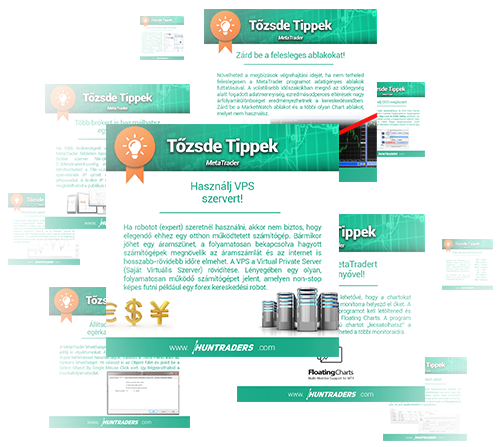 A Huntraders Tőzsdei Tippek Gyűjtemény tartalma: Tanácsok kötvénykereskedőknek, kriptovalutával vagy opcióval kereskedőknek, MetaTrader használóknak, részvénykereskedőknek és kezdőknek egyaránt. Több mint 100 konkrét tipp tapasztalt kereskedőktől Neked, hogy a kereskedés hatékonyabb és eredményesebb legyen!