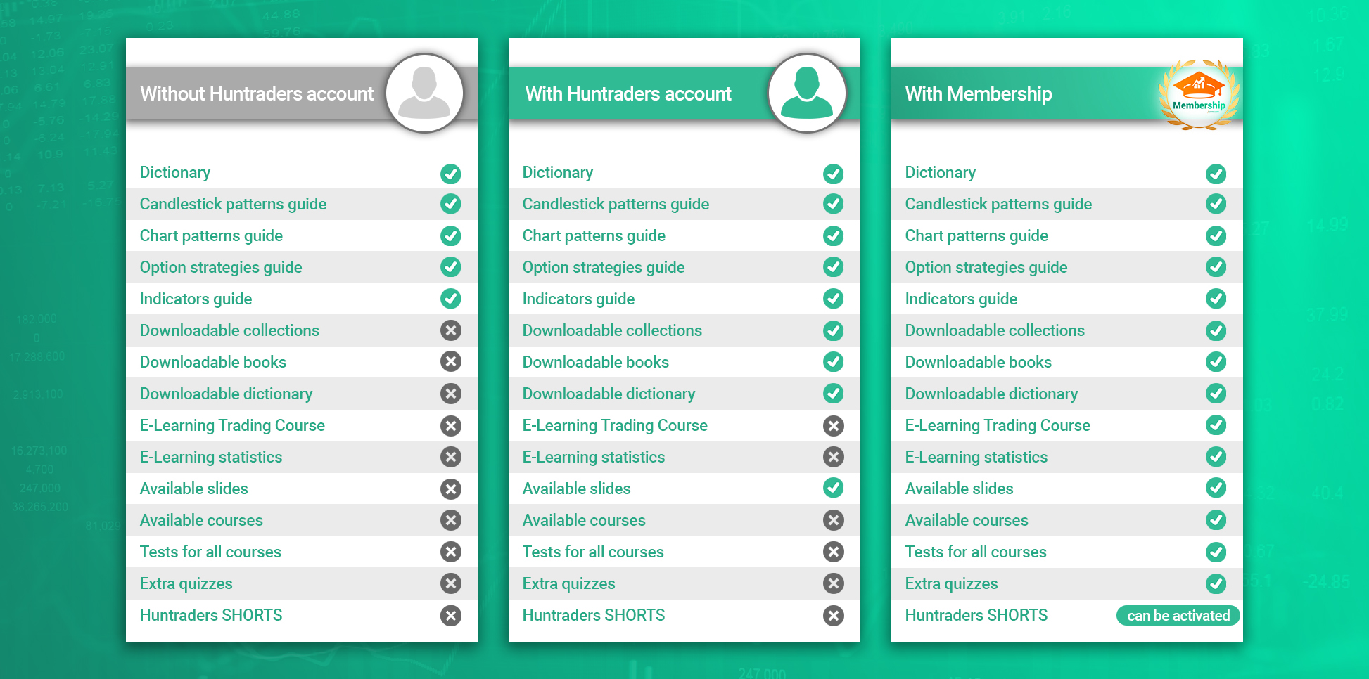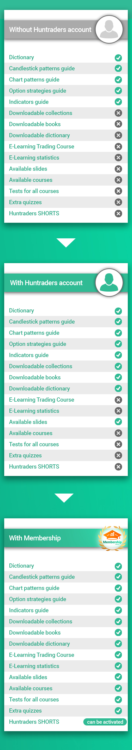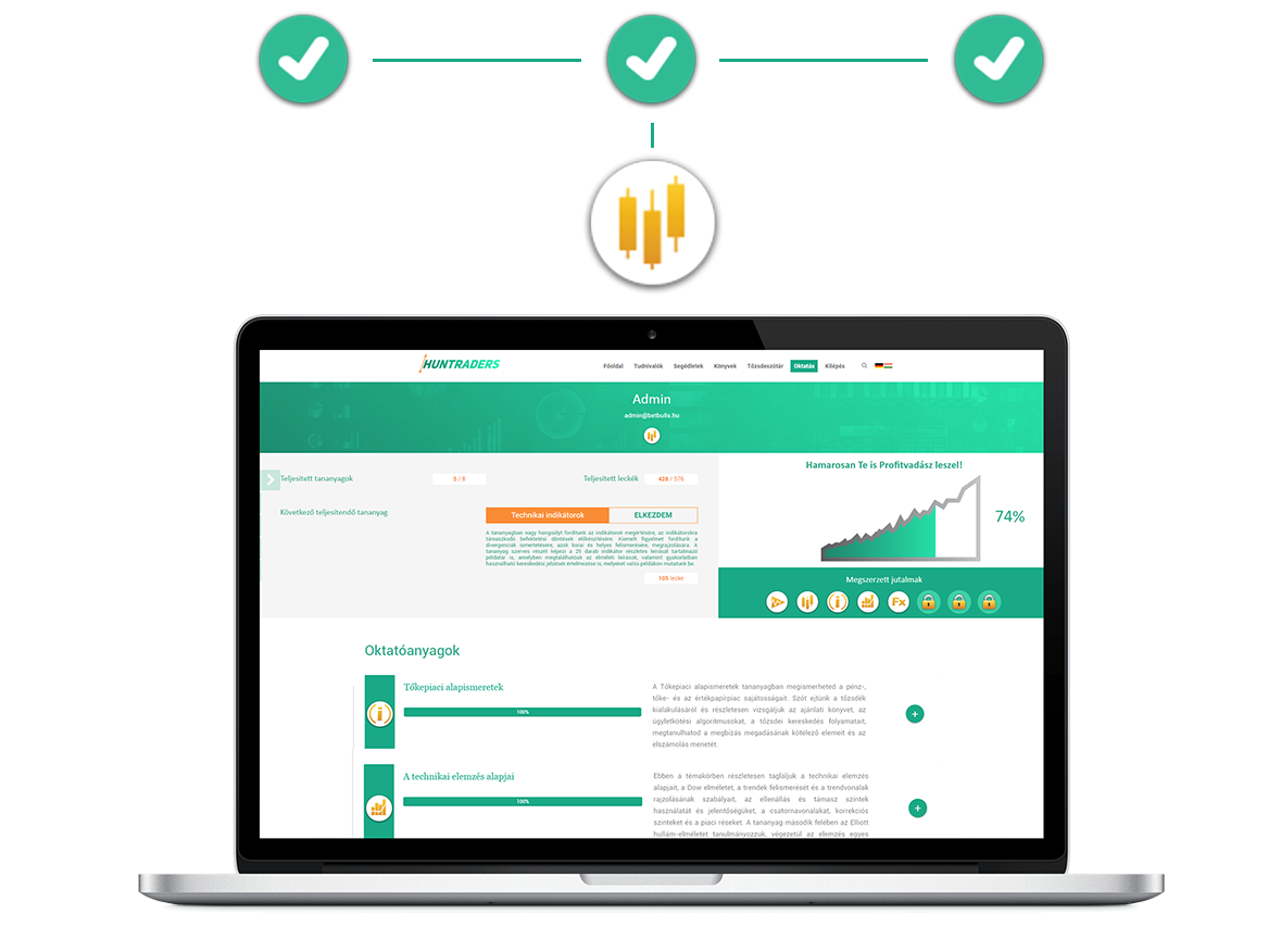 Huntraders’ Experts have developed a perfect trading education system to help beginner and advanced traders to gain the necessary knowledge from the basics to the top of technical analysis. So far 9 complete stock market courses, 1,700 slides and 630 quiz questions are at Your disposal within the e-learning system, 100% in English.